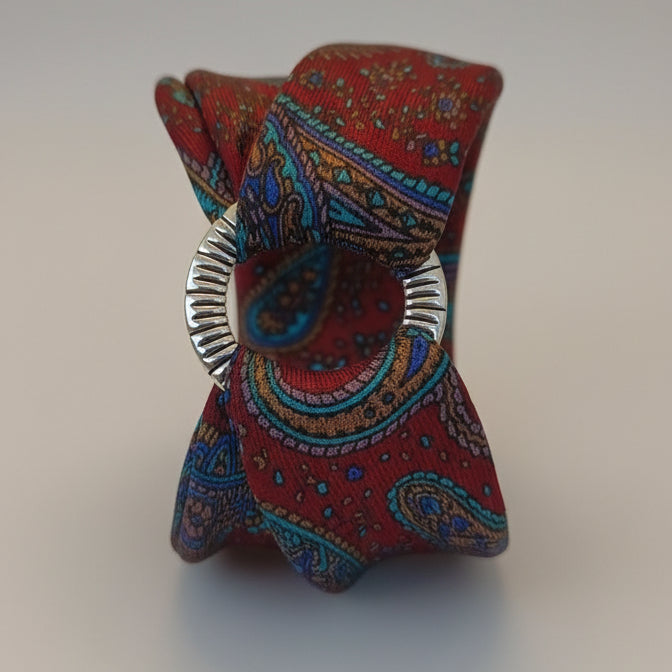 - Matières : 100% soie upcyclée, anneau gravé acier inoxydable
