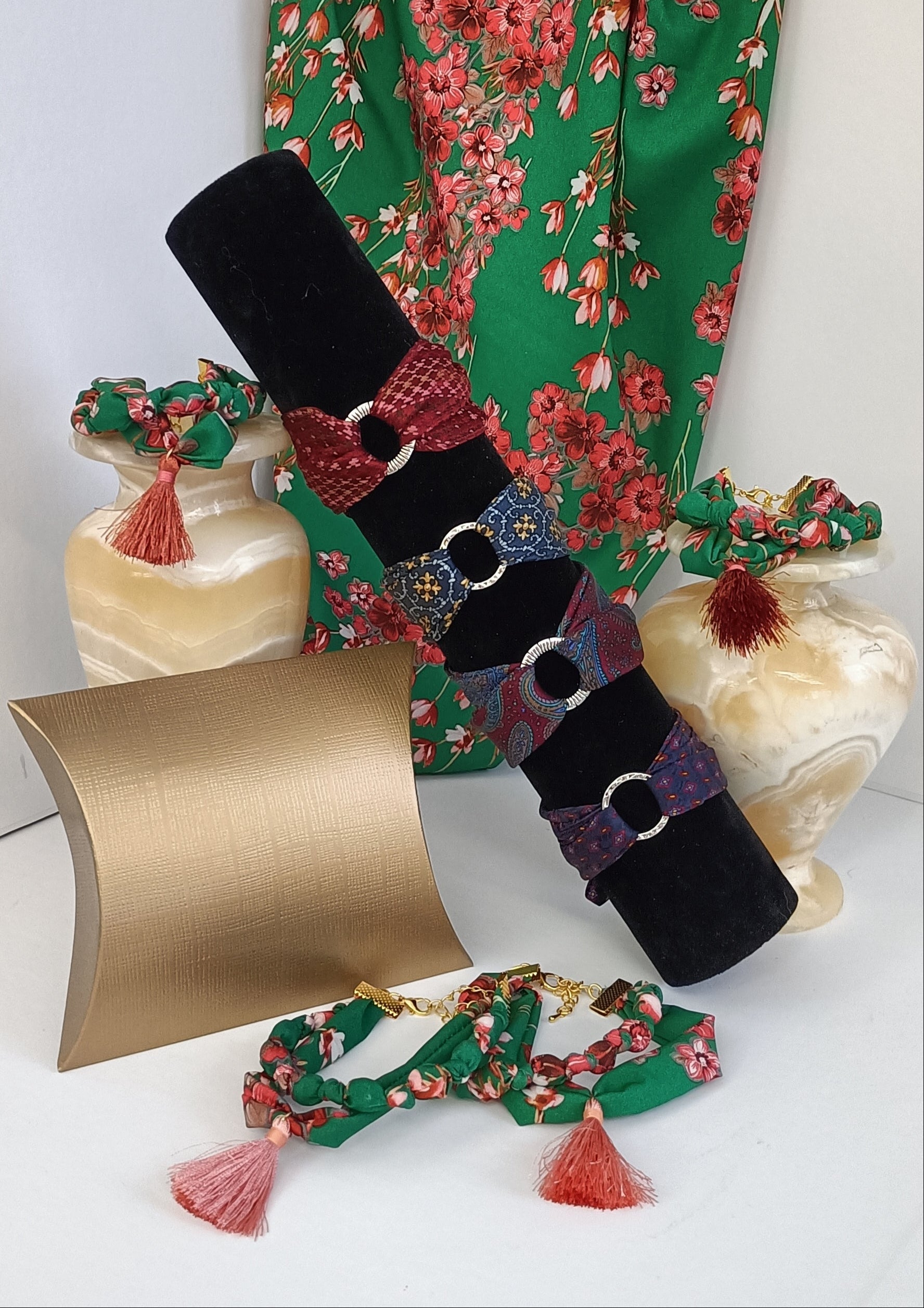 Chaque bracelet est né de la revalorisation de textiles de qualité pour donner vie à une création poétique et éthique.