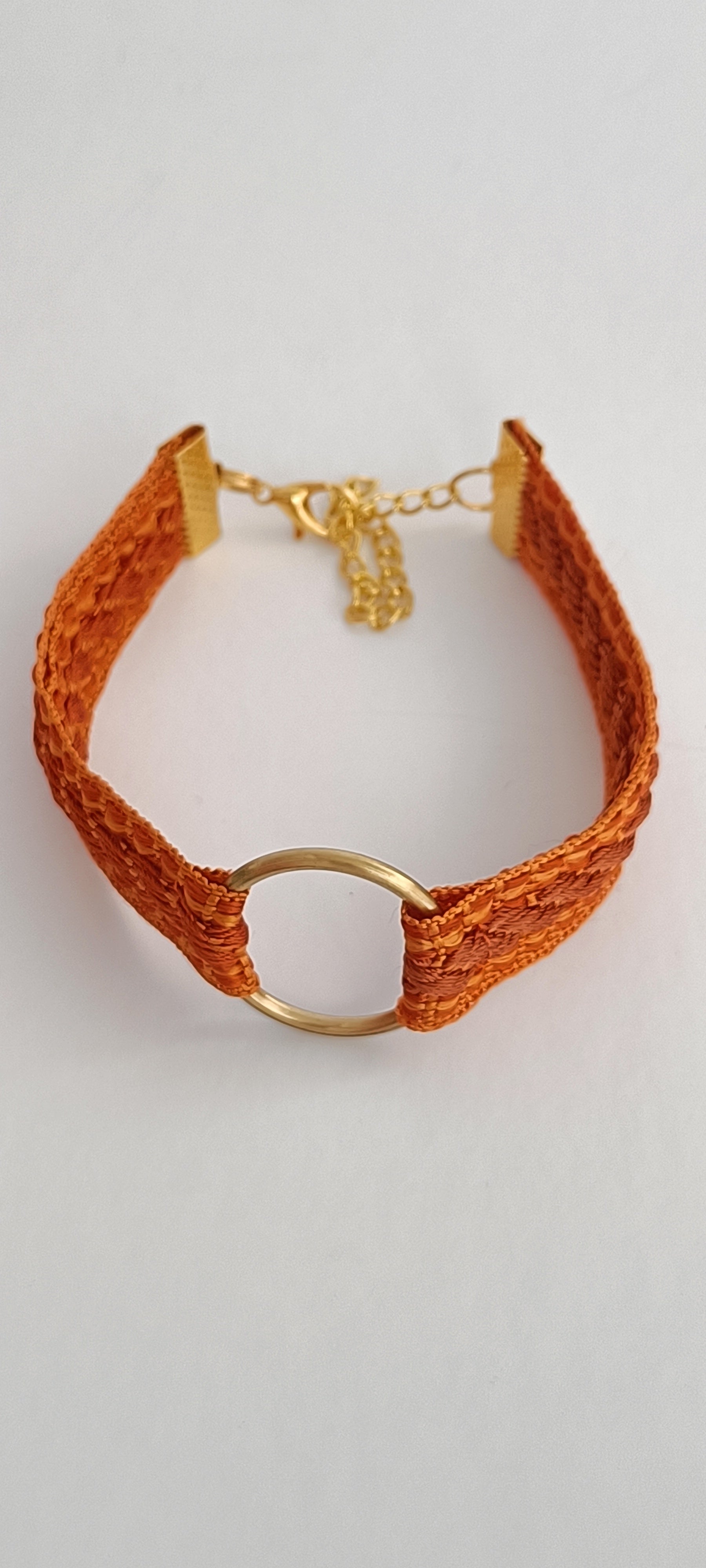Un bracelet en coton et soie qui incarne la beauté intemporelle d’époques révolues, en alliant le charme du vintage à une touche contemporaine.