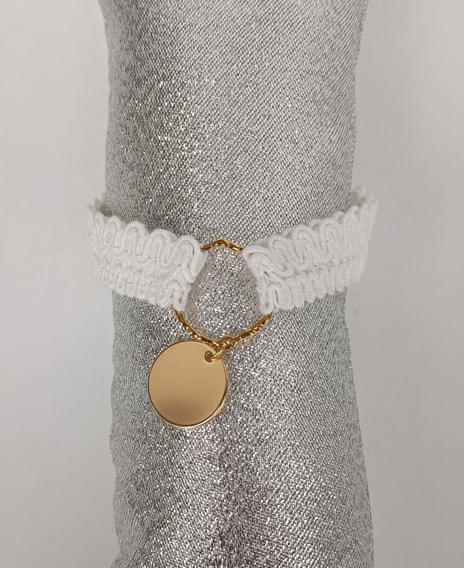 Un bracelet en coton et soie qui incarne la beauté intemporelle d’époques révolues, en alliant le charme du vintage à une touche contemporaine.