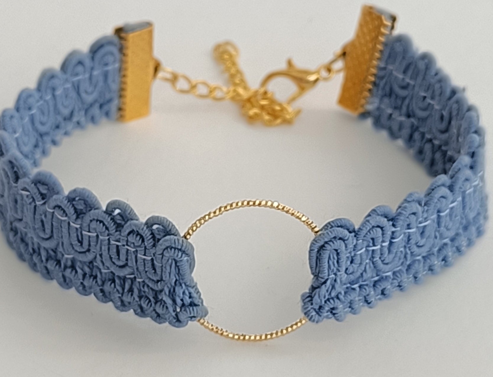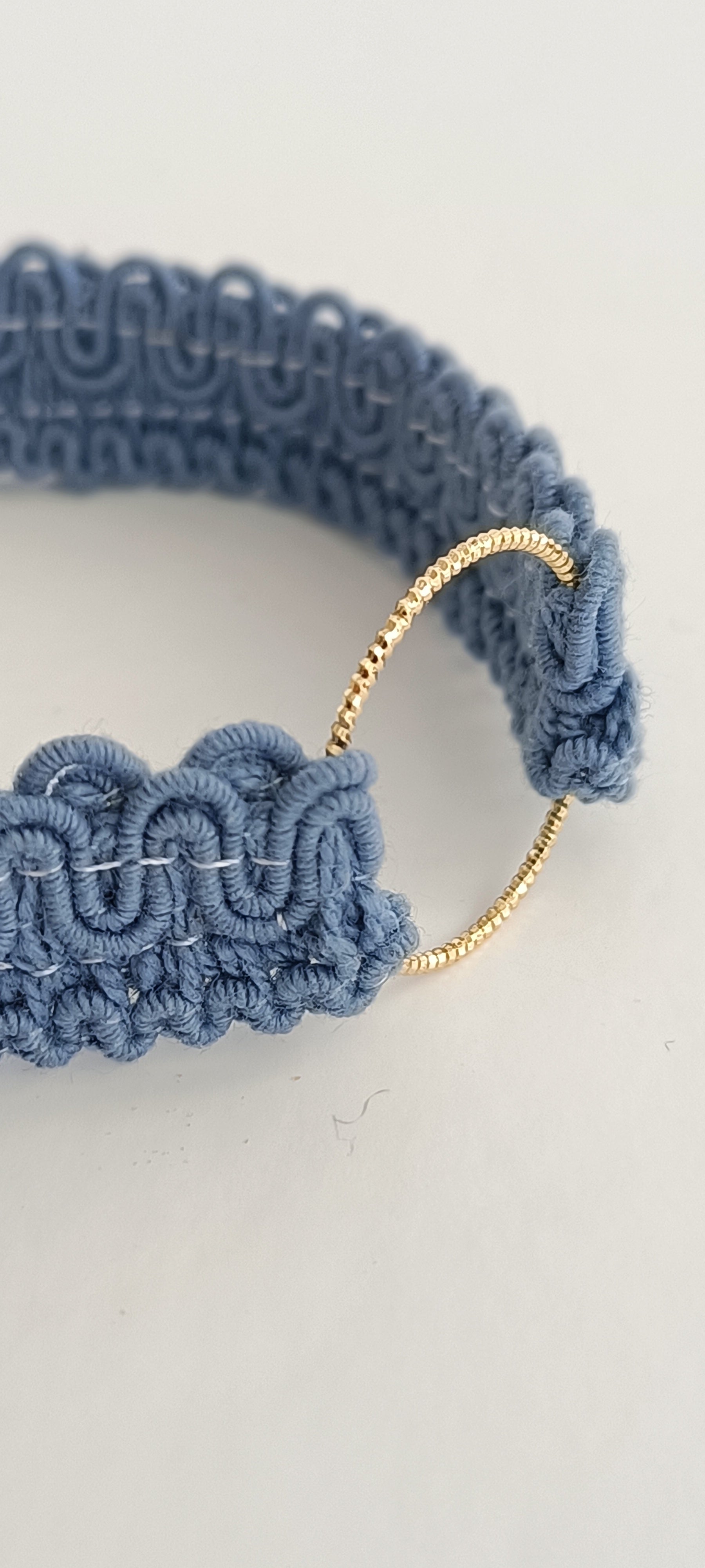 Un bracelet en coton et soie qui incarne la beauté intemporelle d’époques révolues, en alliant le charme du vintage à une touche contemporaine.