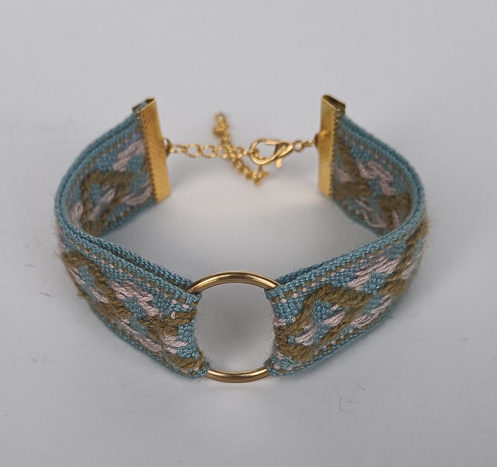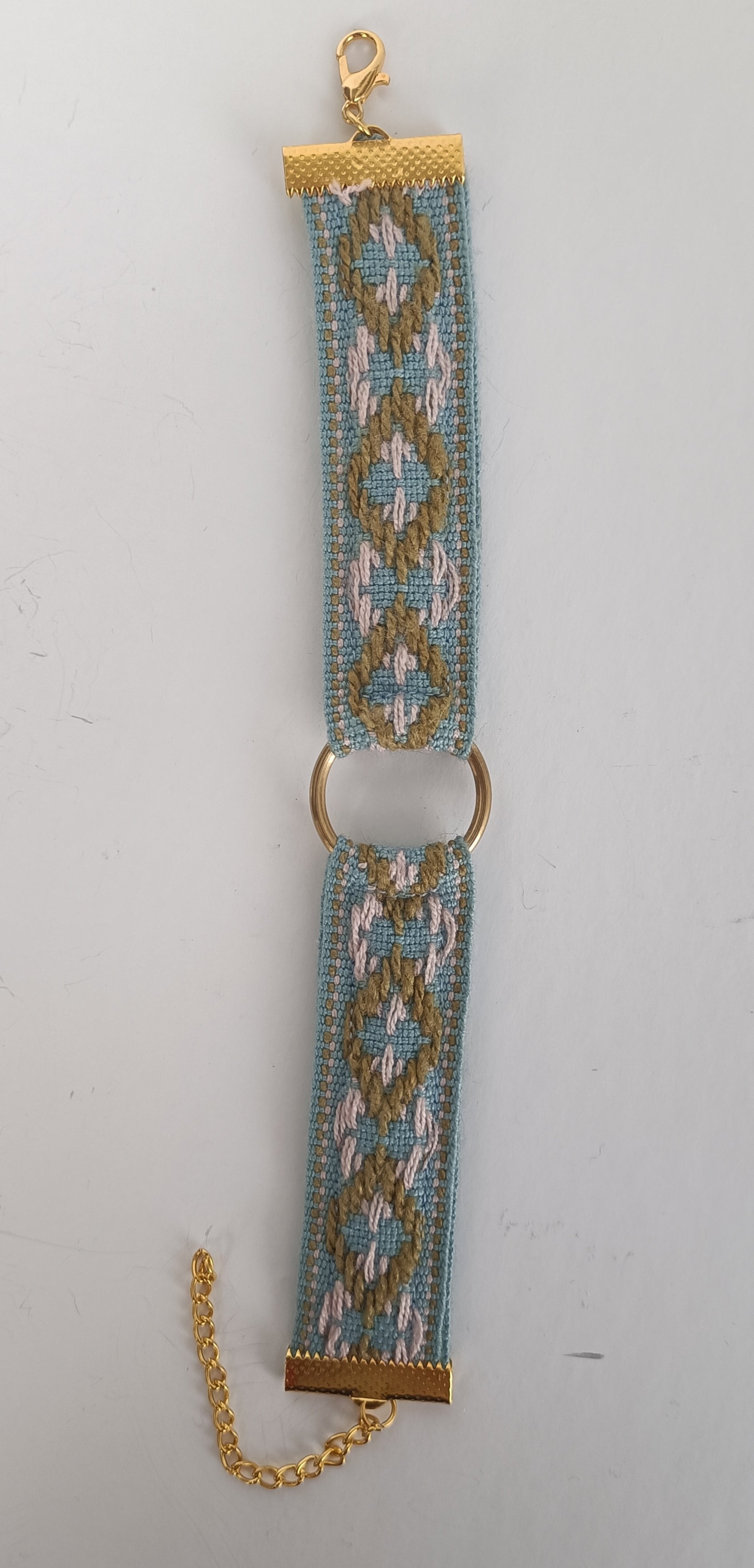 Un bracelet en coton et soie qui incarne la beauté intemporelle d’époques révolues, en alliant le charme du vintage à une touche contemporaine.