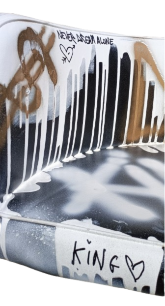 Fusion entre art urbain et élégance contemporaine, cette chaise-fauteuil revisite le mobilier classique à travers un prisme audacieux et émotionnel.