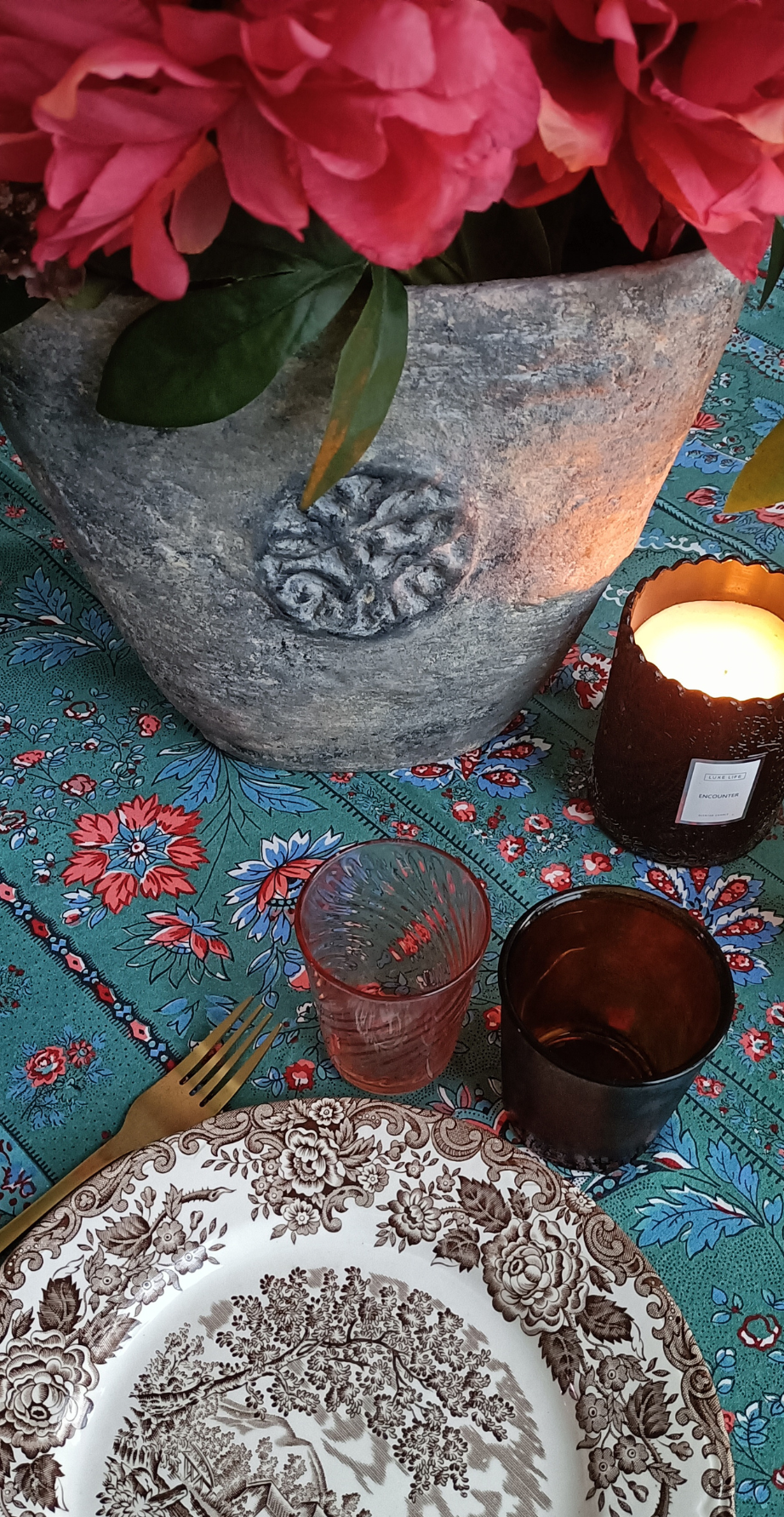 Ses teintes vibrantes de bleu, vert et rouge se mêlent harmonieusement pour créer un design vivant, inspiré des étés italiens et des longues tablées conviviales.