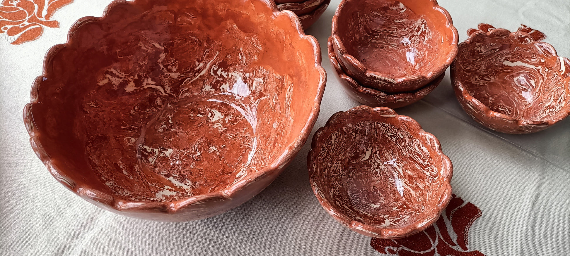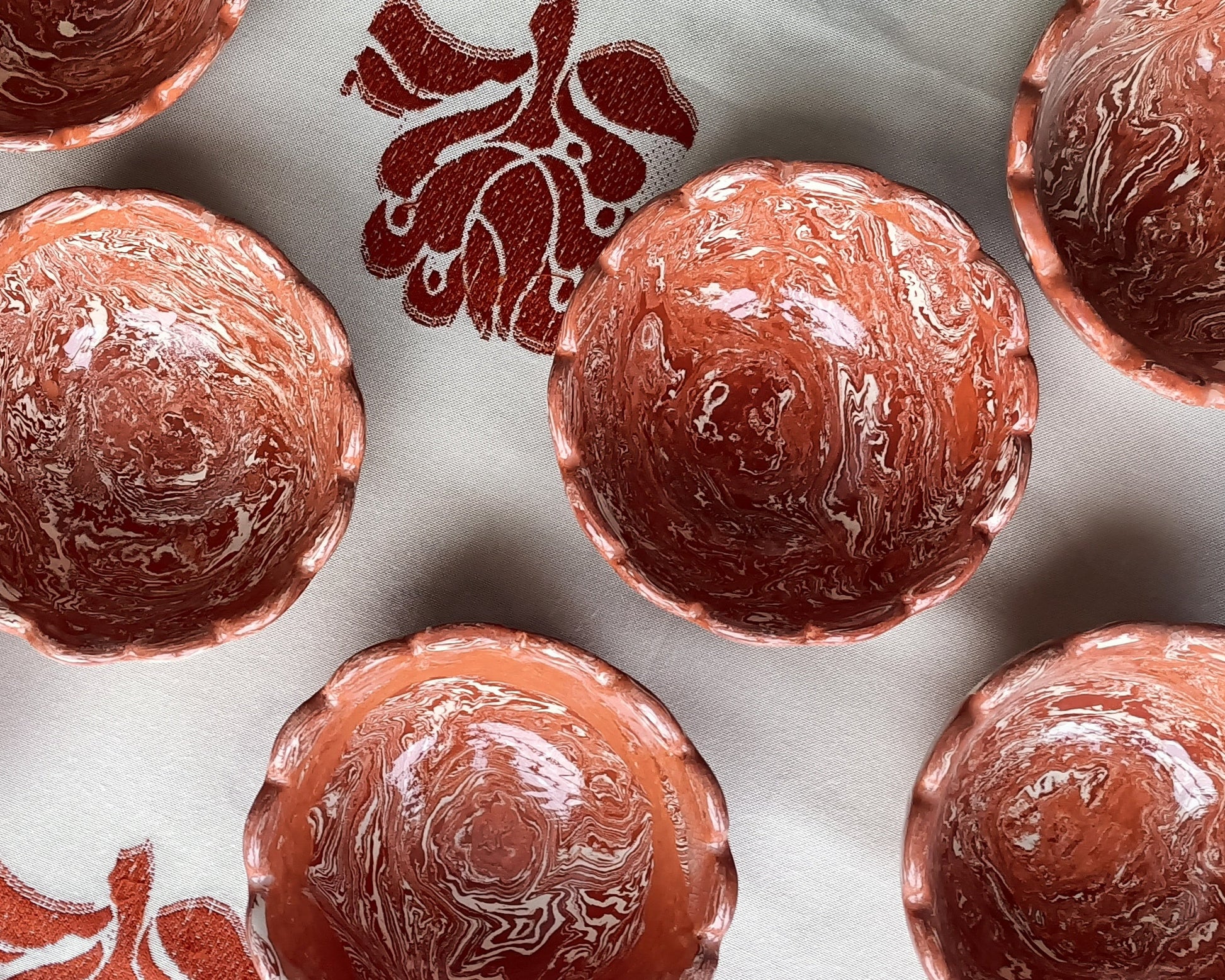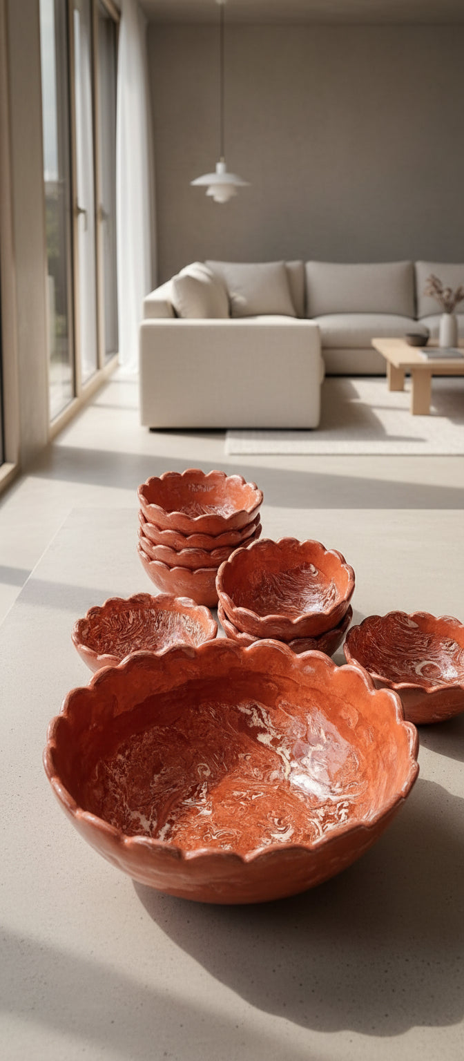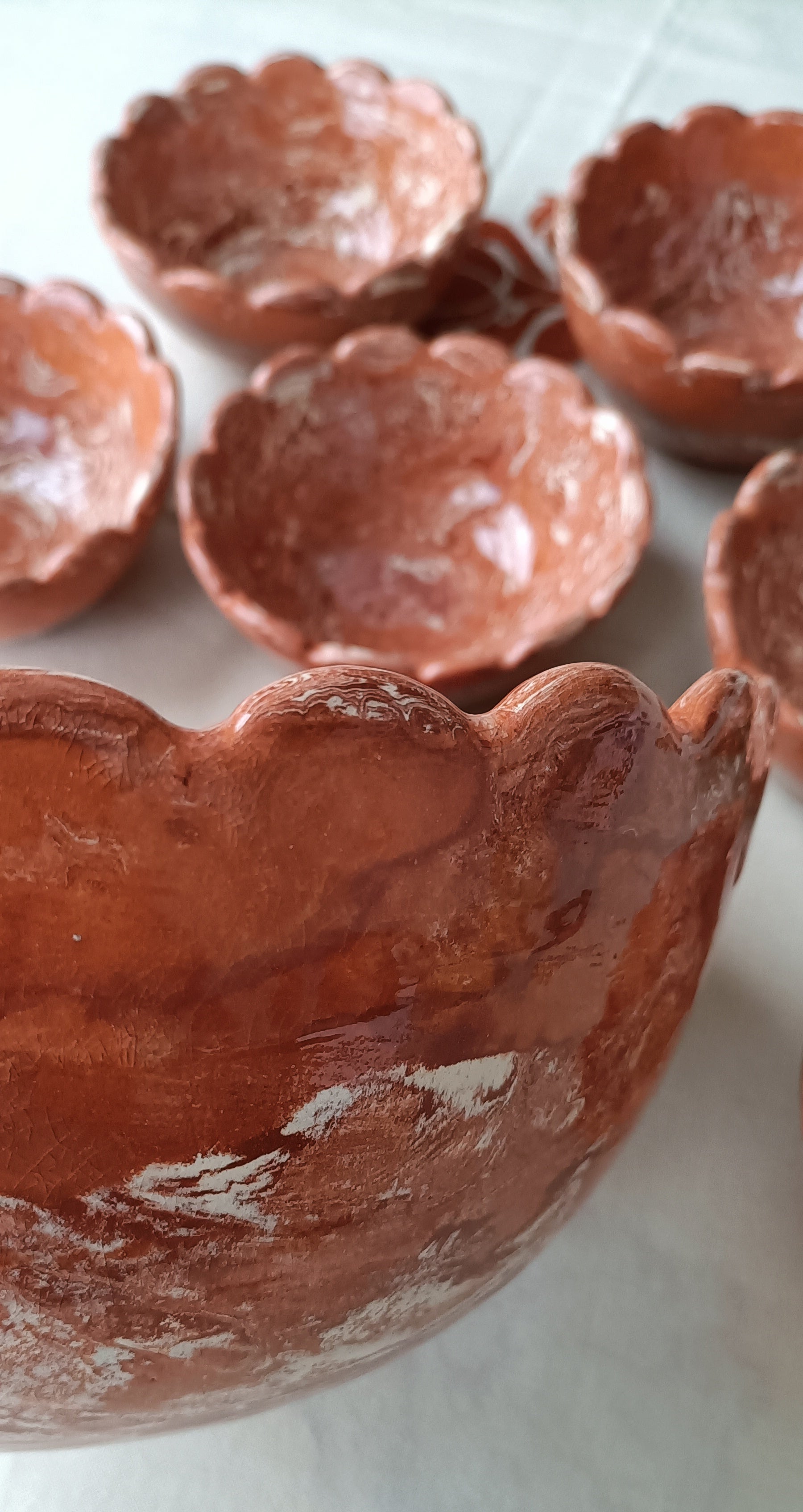 Sublimez chaque pause gourmande avec ce bol en argile aux nuances de terracotta, beige et blanc.