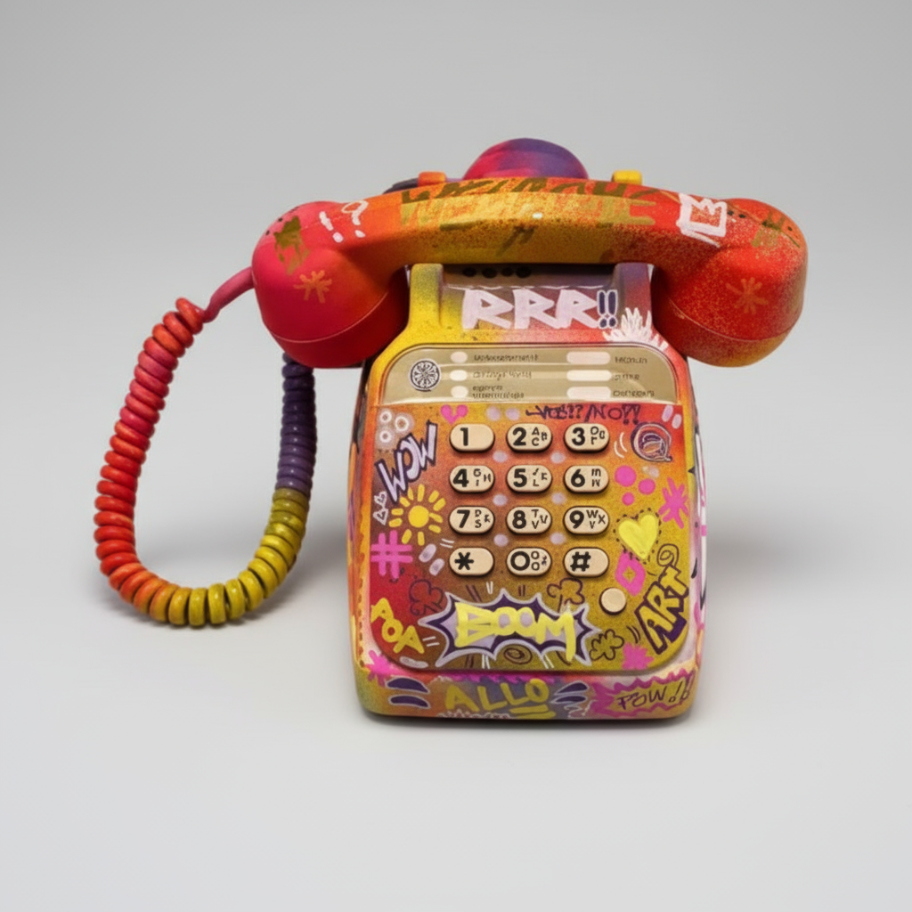Upcyclé avec soin et transformé à la main, ce téléphone devient une sculpture urbaine, à la croisée de la mémoire et de la modernité.