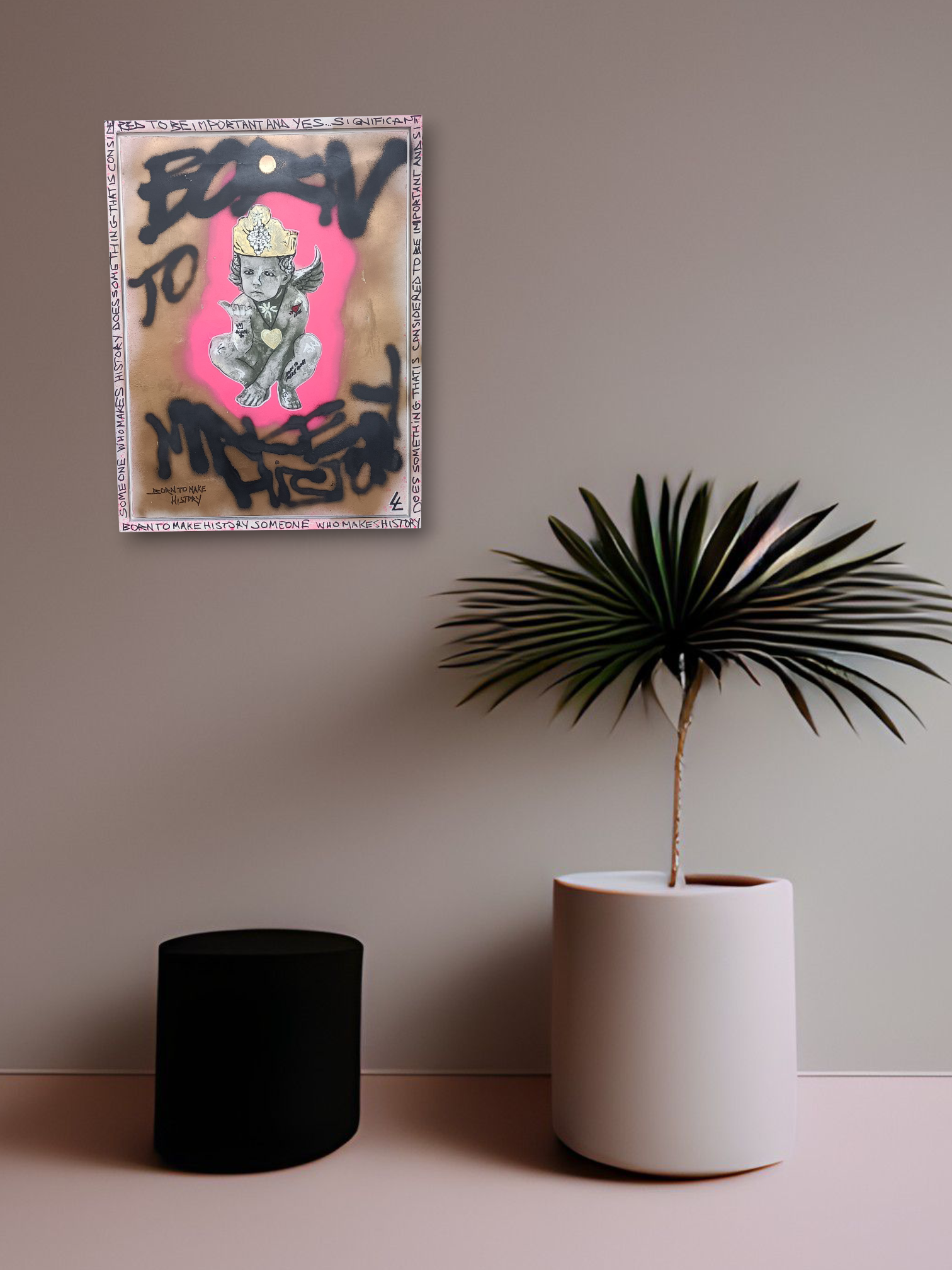 À mi-chemin entre art urbain et design contemporain, cette pièce unique apporte une touche d’excentricité et de mouvement à votre espace.
