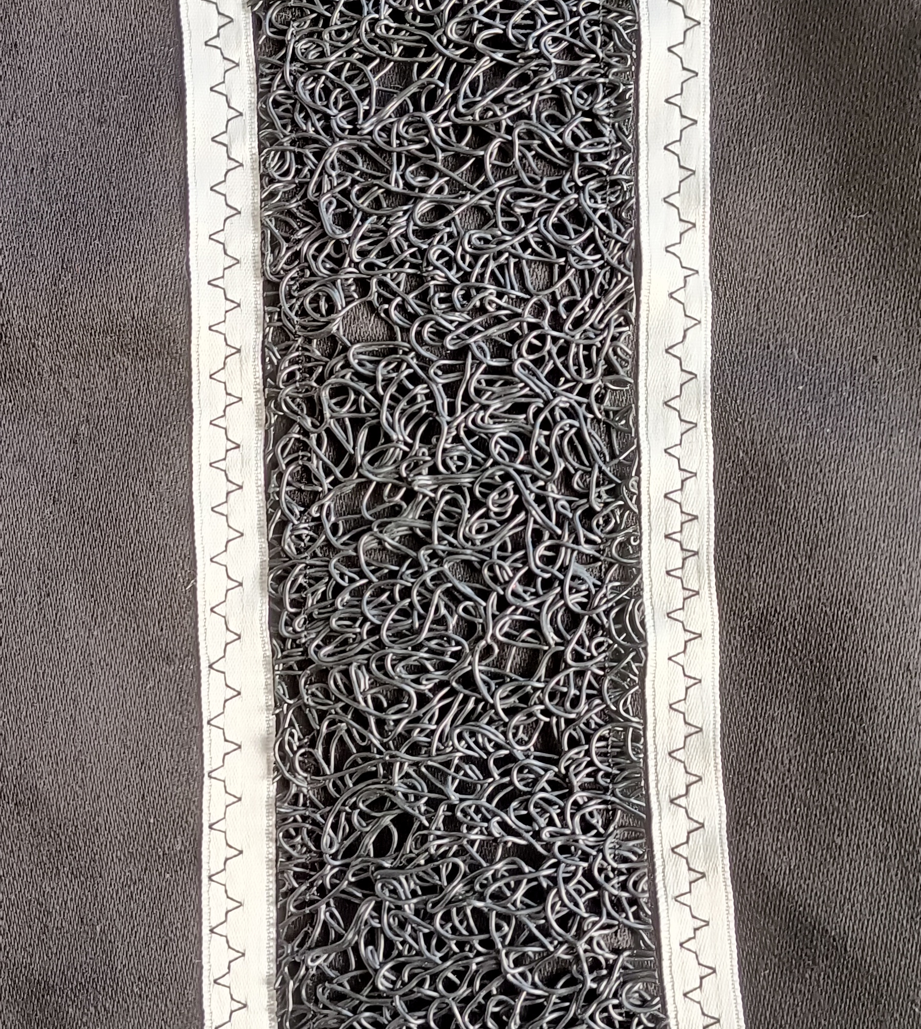 - Matières principales extérieures : tissus recyclés (coton / satin / mousseline / polymère)