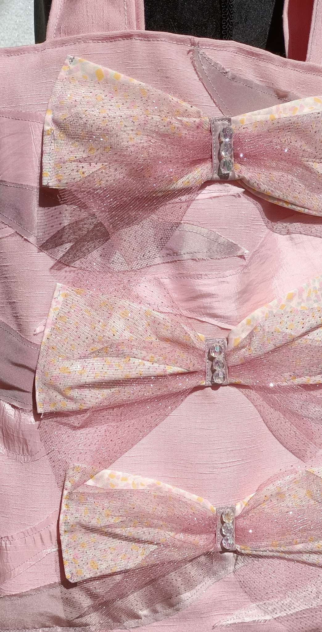 - Matières principales extérieures : tissus recyclés (coton / satin / tulle pailleté )