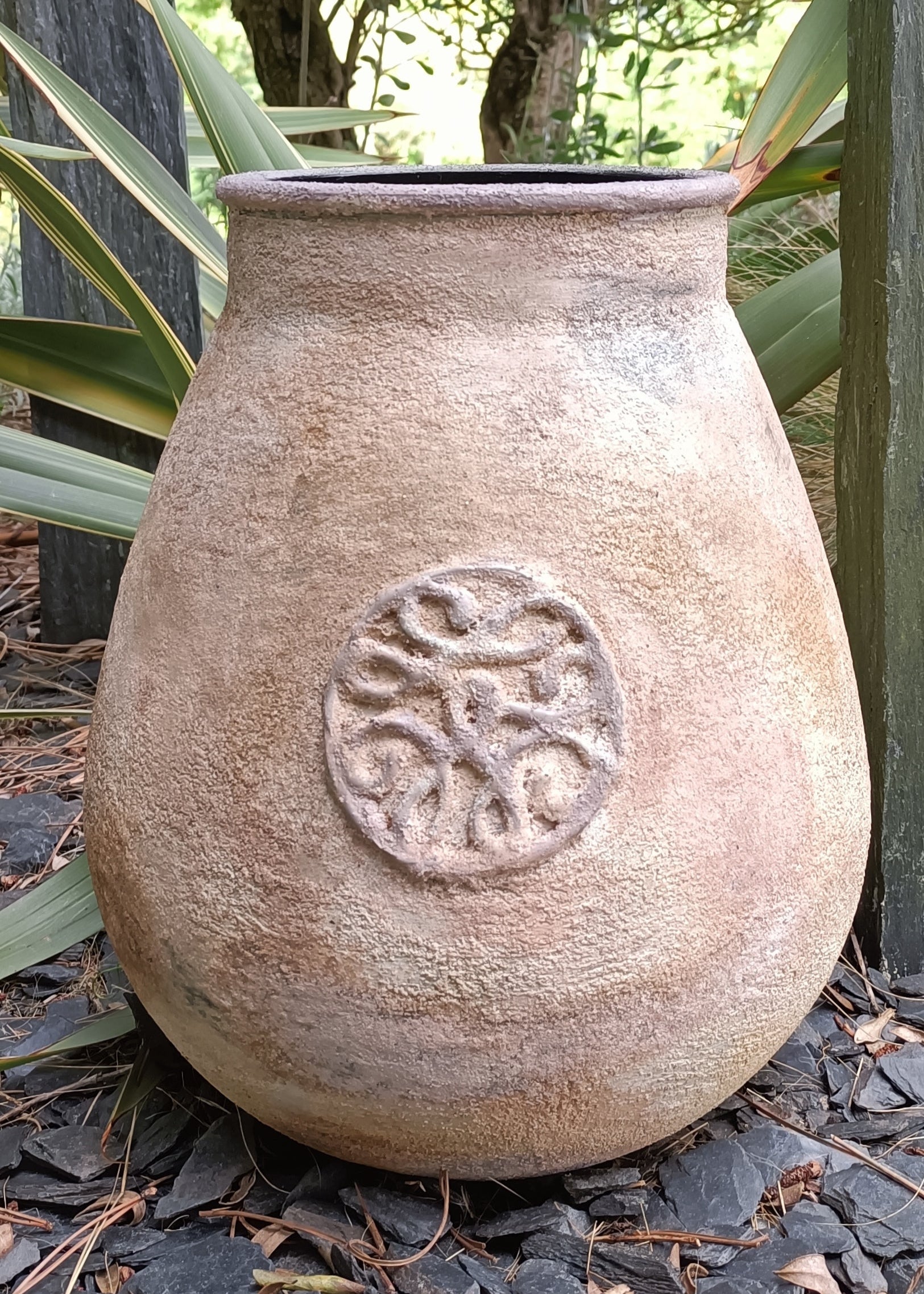 Ce vase unique est une ode au temps et à la matière. Sa patine délicatement travaillée et ses tonalités neutres (terre, beige, gris) en font une pièce au charme discret mais puissant.