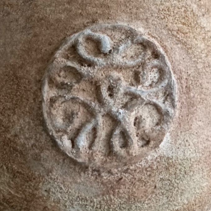 Ce vase décoratif se distingue par un sigle de l'atelier en relief, témoignage de l’authenticité de sa création.
